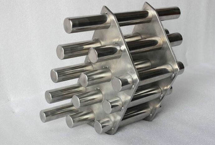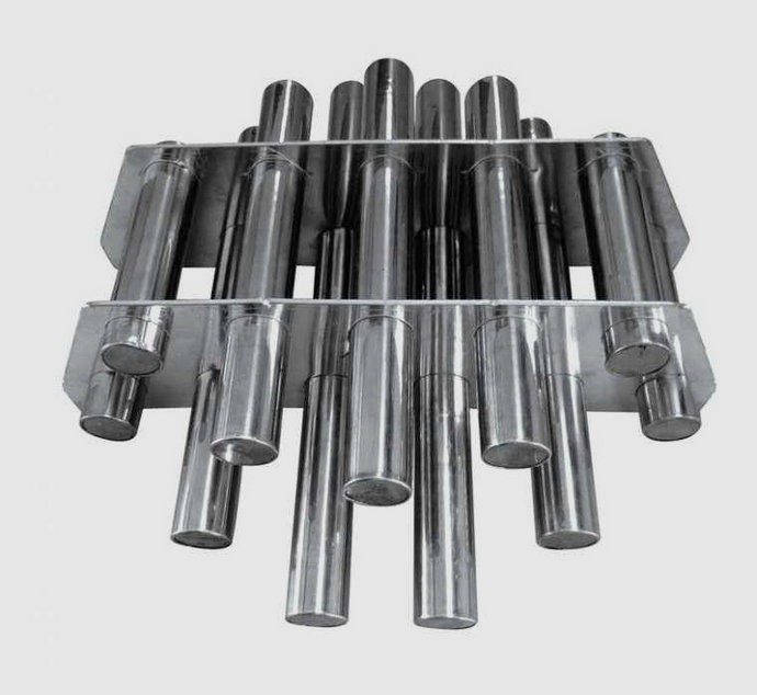 主要用于食品、精細化工等行業(yè),一般注塑行業(yè)使用多的是鐵氧體永磁材料制作的,表面磁場強度在2000高斯左右;而食品和精細化工行業(yè)用磁格柵,多用稀土釹鐵硼磁鐵制作,表面磁場強度在6000到12000高斯,相對鐵氧體磁格柵磁力要強很多,在使用過程,吸附鐵雜質的粒度會更細小,抓附力會更強。